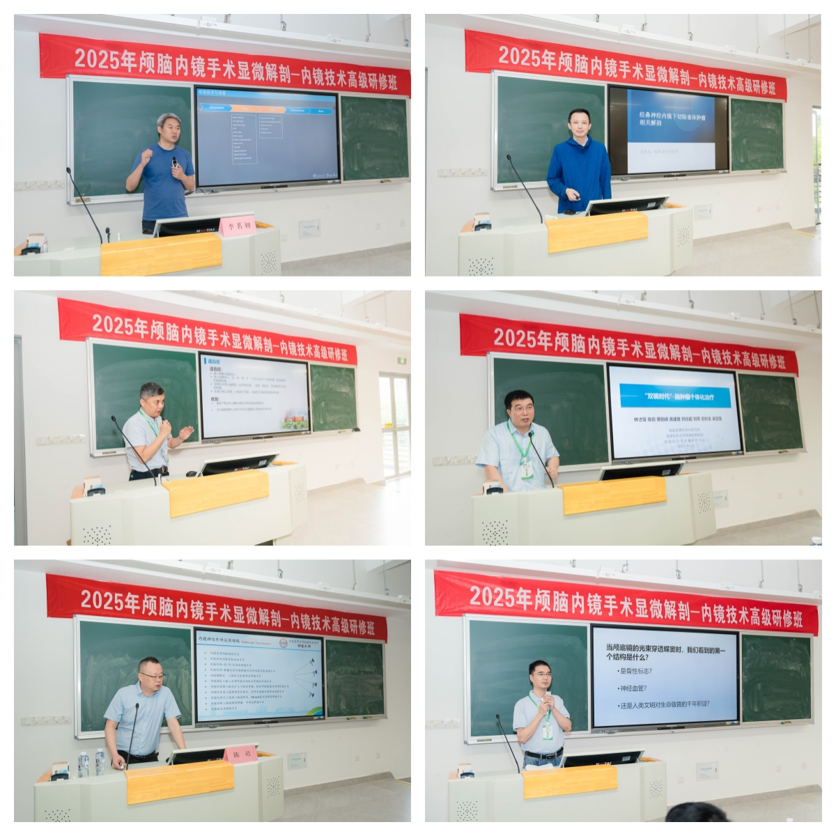 研修班基于“解剖精研促進(jìn)臨床革新”的學(xué)術(shù)理念,課程內(nèi)容豐富,教學(xué)模式理論與實(shí)踐并重,采用“理論講解-標(biāo)本示教-學(xué)員實(shí)操-回顧討論”教學(xué)模式。研修內(nèi)容涵蓋神經(jīng)外科最常用入路及技術(shù),神經(jīng)內(nèi)鏡垂體瘤切除手術(shù)等前沿內(nèi)鏡技術(shù),技術(shù)采用以高質(zhì)量標(biāo)本+顯微鏡+神經(jīng)內(nèi)鏡+外視鏡全面訓(xùn)練模式?,F(xiàn)場(chǎng)配備了先進(jìn)的手術(shù)顯微鏡、神經(jīng)內(nèi)鏡、外視鏡等設(shè)備,結(jié)合我校醫(yī)學(xué)院解剖實(shí)訓(xùn)室的高質(zhì)量標(biāo)本與實(shí)訓(xùn)環(huán)境,讓學(xué)員們?cè)凇叭妗钡氖中g(shù)環(huán)境中進(jìn)行實(shí)操訓(xùn)練。