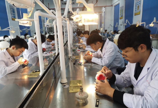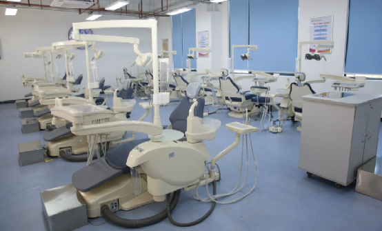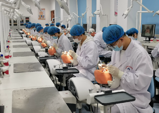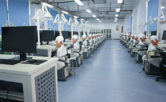 校內(nèi)實訓(xùn)基地面積達700㎡,包含口腔綜合實訓(xùn)室、口腔模擬診室、口腔修復(fù)工藝室及門診部口腔科等,擁有100套對接臨床的仿頭模教學(xué)系統(tǒng),教學(xué)設(shè)備總值為800多萬元,為學(xué)生開展各項實訓(xùn)對接口腔臨床工作任務(wù)提供堅實的基礎(chǔ)。