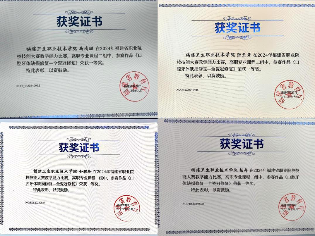近年來,學(xué)生在口腔醫(yī)學(xué)各級各類技能大賽上共獲42個獎項,包括國際銀獎1項、全國金獎1項、全國一等獎10項、全國團體第一名2項、省級團體第一名1項。學(xué)生獲第五屆國際口腔技師學(xué)術(shù)大會(韓國)口腔醫(yī)學(xué)技術(shù)專業(yè)石膏牙雕刻銀獎(第二名),是第一個在該項國際比賽中獲獎的中國學(xué)生,實現(xiàn)了中國零的突破。