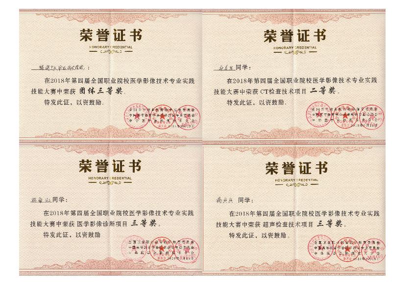 第四屆全國職業(yè)院校醫(yī)學影像技術專業(yè)實踐技能大賽獲獎證書