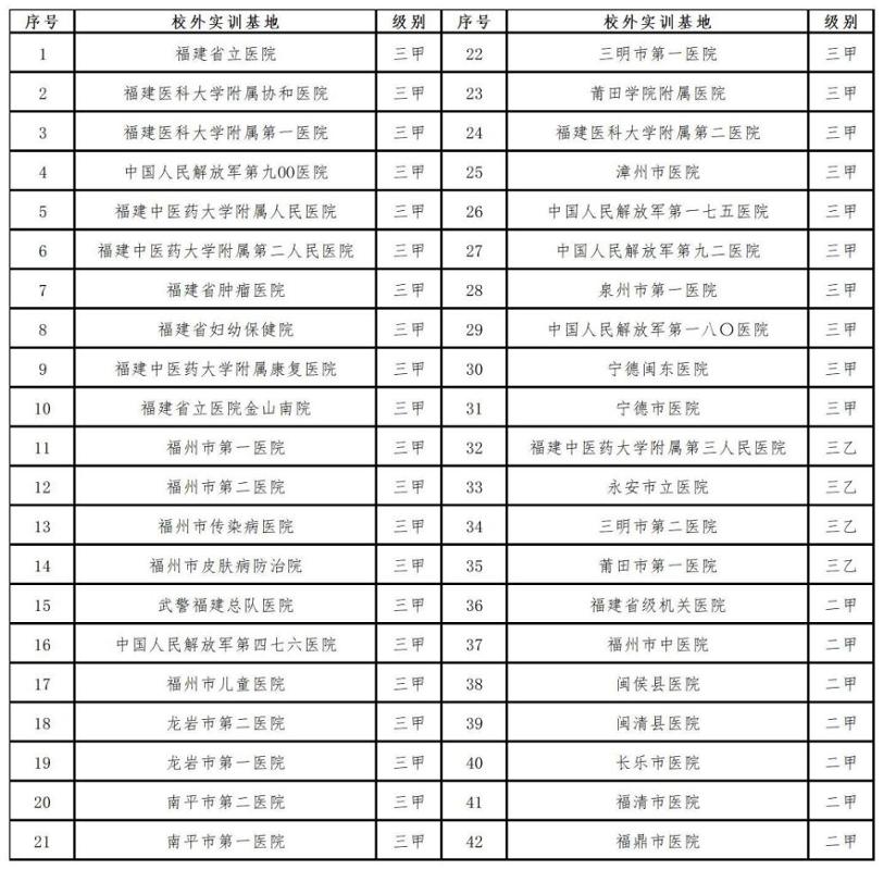 專業(yè)現(xiàn)有包括福建省腫瘤醫(yī)院、福建省立醫(yī)院、福建醫(yī)科大學附屬協(xié)和醫(yī)院、福建醫(yī)科大學附屬第一醫(yī)院等31家三甲醫(yī)院及11家二甲以上醫(yī)院作為校外實習基地。