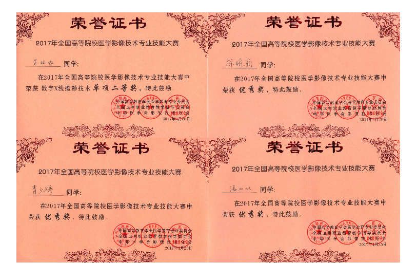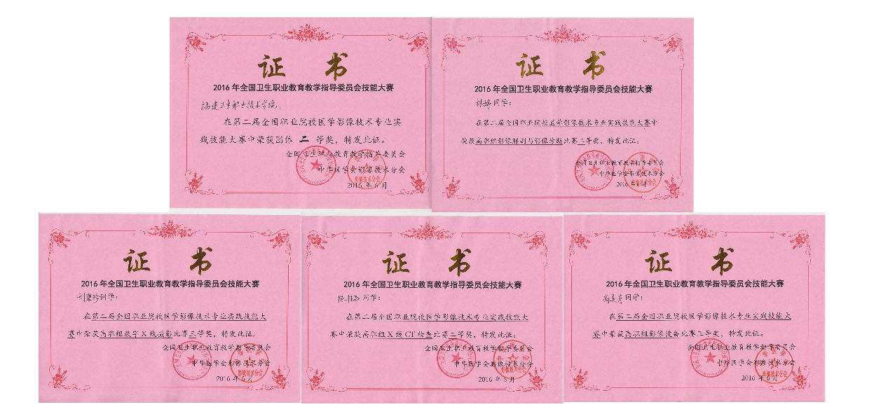 首屆全國職業(yè)院校醫(yī)學影像技術專業(yè)實踐技能大賽獲獎證書