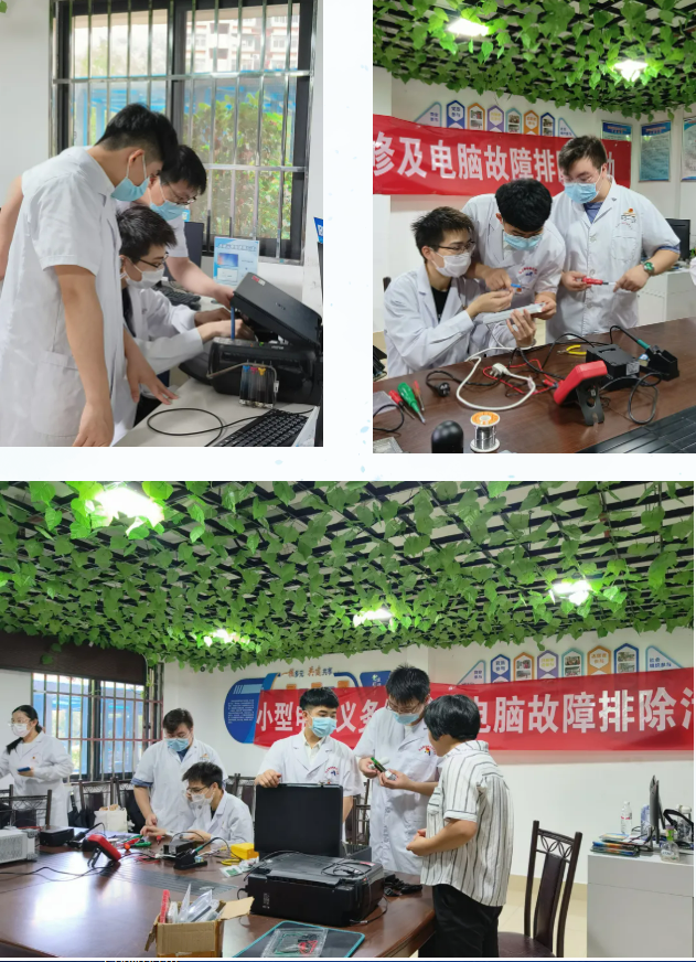 專業(yè)教師聯(lián)合醫(yī)學(xué)技術(shù)與工程學(xué)院第二黨支部多次前往閩侯世茂小區(qū)、火車站東浦社區(qū)、火車站八閩第一站、三明尤溪、三明明溪、三明洋中等地開展小型電器義務(wù)維修及電腦故障排除社會實踐活動,拓展學(xué)生的實踐技能。