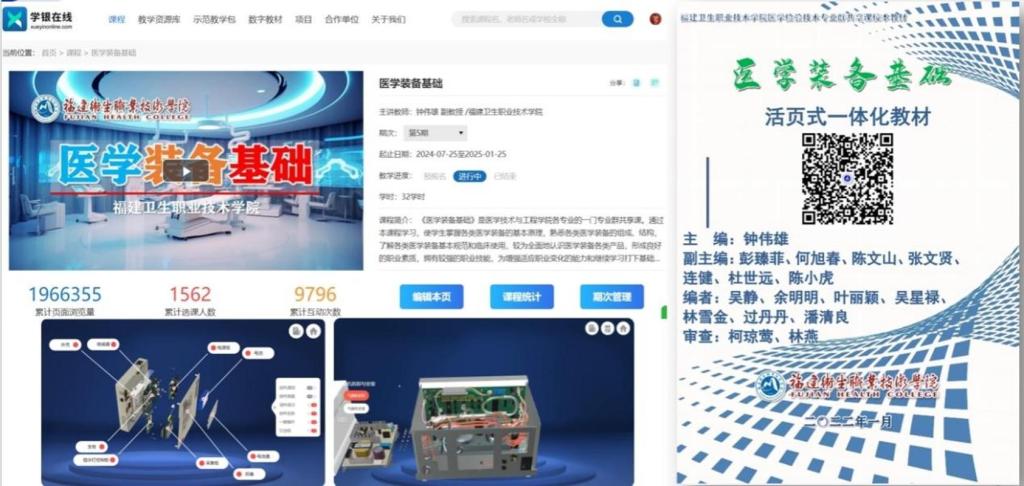 智能嵌入式控制技術(shù)、醫(yī)用 X 射線成像技術(shù)及設(shè)備、CT 技術(shù)及設(shè)備、醫(yī)用超聲成像技術(shù)及設(shè)備、醫(yī)療設(shè)備質(zhì)量控制與檢測、醫(yī)電產(chǎn)品組裝與調(diào)試。建設(shè)有福建省省級職業(yè)教育智能醫(yī)療裝備技術(shù)專業(yè)教學(xué)資源庫。