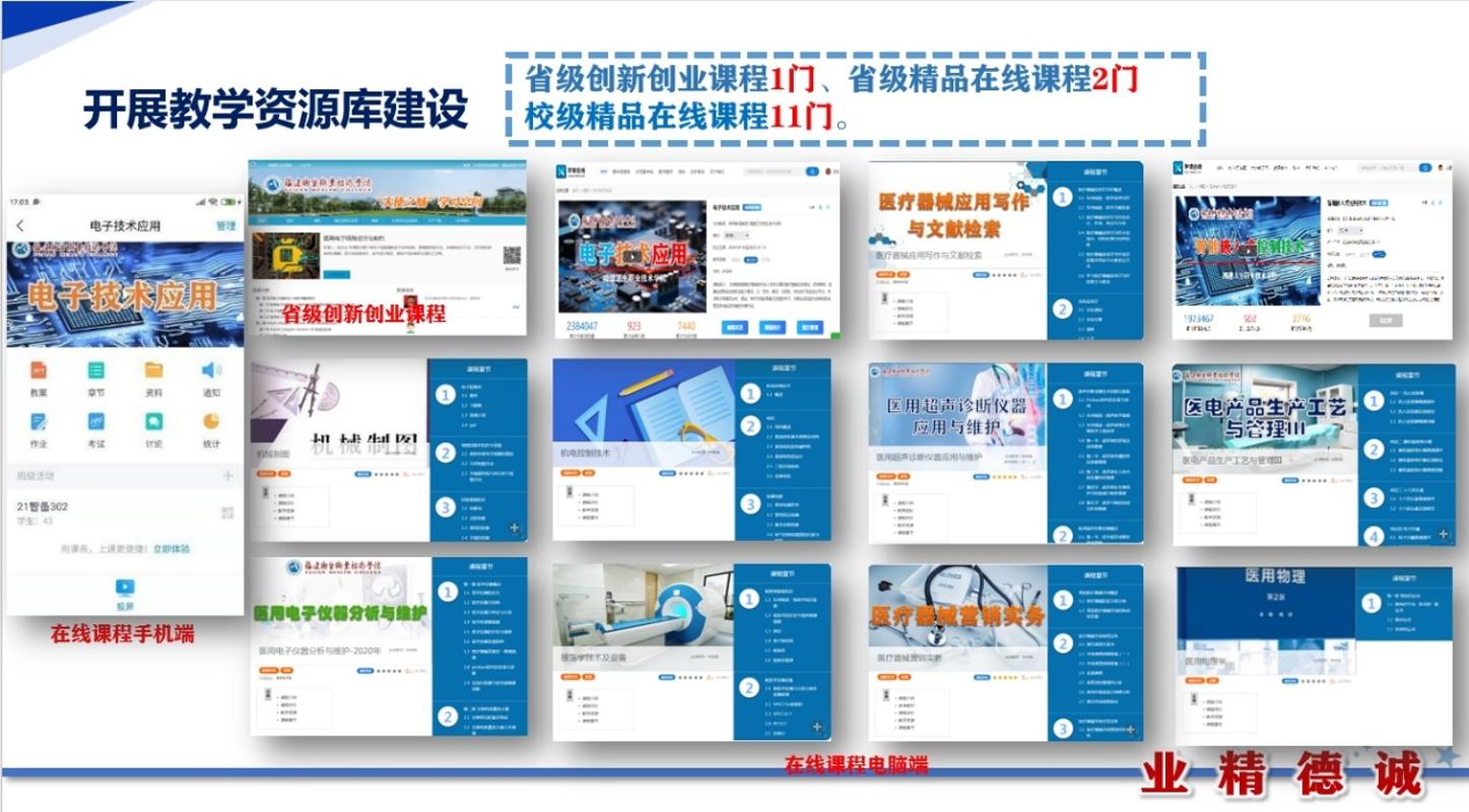 智能醫(yī)療裝備技術(shù)專業(yè)創(chuàng)辦于2011年,為全國藥品職業(yè)教育教學(xué)指導(dǎo)委員會醫(yī)療器械類專委會委員單位、全國高等職業(yè)學(xué)校校長聯(lián)席會議雙創(chuàng)教育專委會委員單位、全國醫(yī)療裝備技術(shù)服務(wù)行業(yè)產(chǎn)教融合共同體理事單位、福建省醫(yī)療器械行業(yè)協(xié)會副會長單位,旨在培養(yǎng)具有工匠精神和信息素養(yǎng),能夠從事智能醫(yī)療裝備軟硬件安裝調(diào)試、裝備應(yīng)用和故障分析排除、按照裝備操作規(guī)范進行質(zhì)量檢測等工作的高素質(zhì)技術(shù)技能人才,為福建省高水平高職專業(yè)群重點建設(shè)專業(yè)。專業(yè)擁有一支經(jīng)驗豐富的“雙師型”碩博教學(xué)創(chuàng)新團隊,與多家醫(yī)療器械公司簽訂合作協(xié)議。2024年榮獲福建省職業(yè)教育教學(xué)成果獎一等獎。