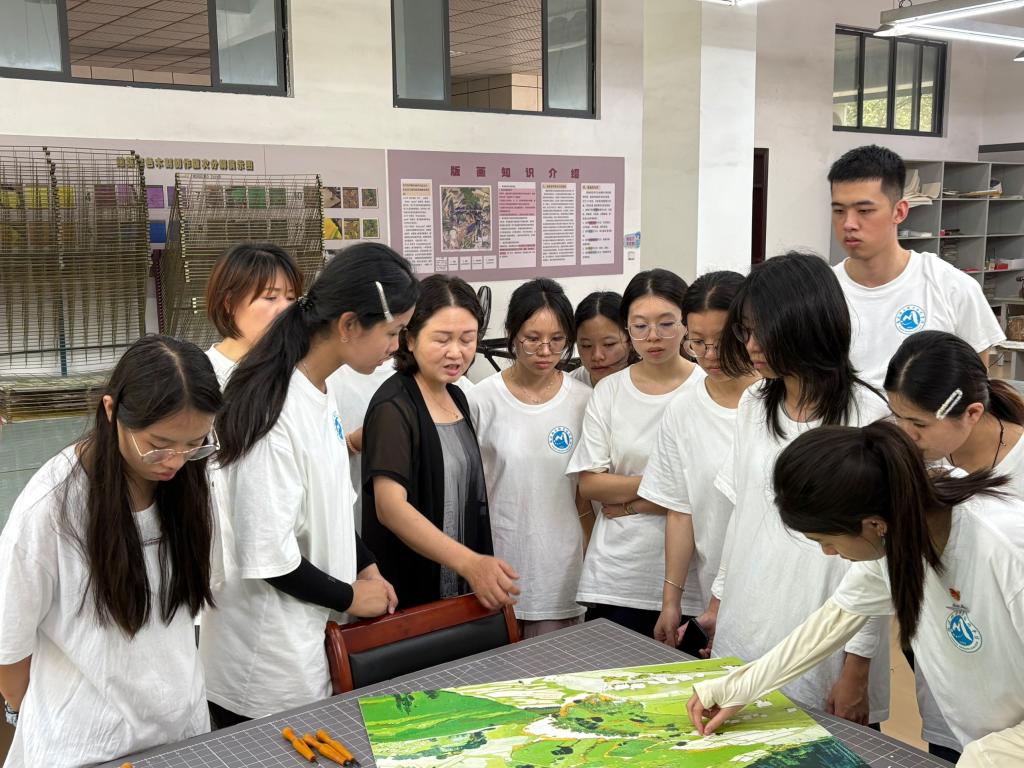 踏入松溪版畫館,歲月匠心在木板間流淌。隊(duì)員穿梭于展廳長廊,目光掠過古樸雅致的山水圖景、靈動(dòng)鮮活的民俗畫卷,于刀木交織的藝術(shù)語言中,感受傳統(tǒng)美學(xué)與鄉(xiāng)土風(fēng)情的共鳴。這場沉浸式文化之旅,讓青年心中播撒下傳承種子。以青春筆觸續(xù)寫千年文脈,讓非遺薪火隨時(shí)代脈動(dòng)不息。