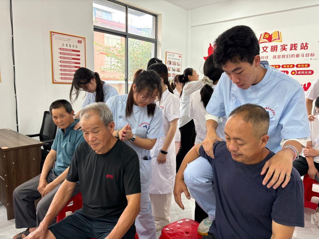 官路村義診現(xiàn)場,隊(duì)員們化身健康衛(wèi)士,精準(zhǔn)測(cè)量血壓、細(xì)致問診查體,以輕柔的推拿手法,為村民撫平肌骨深處的沉郁滯澀 ,100份解暑藥包傳遞夏日清涼。診療與叮囑皆飽含對(duì)父老鄉(xiāng)親的敬重,讓村民感受關(guān)懷,也讓隊(duì)員讀懂“健康所系,性命相托”的分量 。