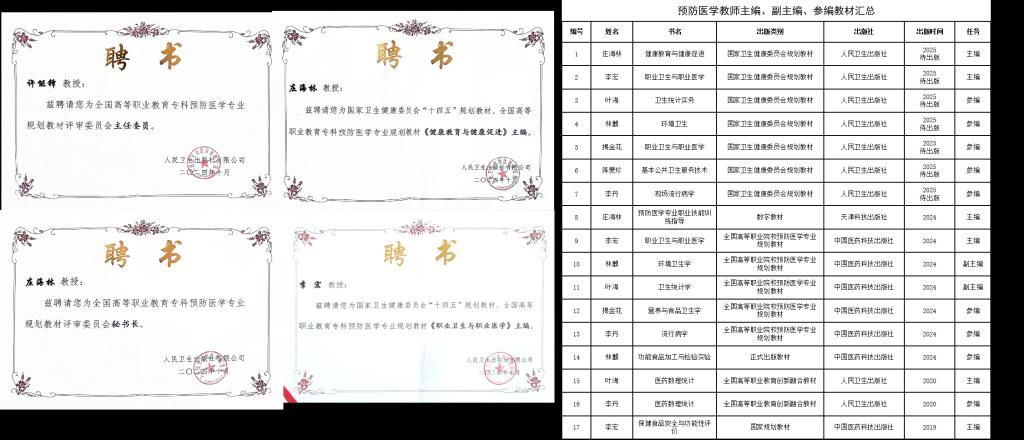 本專業(yè)以"產教融合 文化育人”為特色,立足于我省基層公共衛(wèi)生人才培養(yǎng),現(xiàn)有7名專任教師,專業(yè)團隊素質高,高級職稱4人,博士2人,省級專業(yè)帶頭人及省市級科技特派員4人,"雙師型”教師占比93.8%,多名教師持有公共衛(wèi)生執(zhí)業(yè)醫(yī)師資格證書。團隊先后獲得各類榮譽及多項發(fā)明專利,主持國家級、省級、廳級課題近20項,發(fā)表SCI等各級論文30余篇,主編、參編教材10余本。