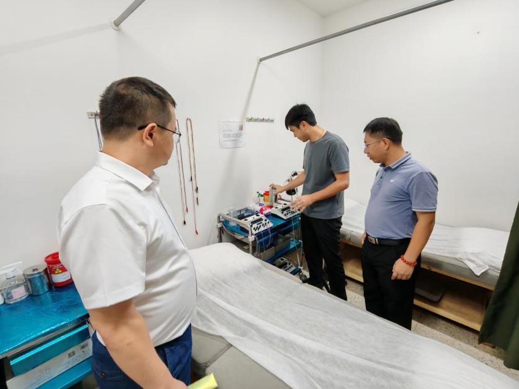 代表團同步走訪東方中醫(yī)診所,調(diào)研運營與功能布局,了解診療流程、藥材使用等情況,對診所技術操作規(guī)范、設備設施擺放問題提出建議,雙方商定后期共同促進中醫(yī)診所的規(guī)范運營。代表團向診所輸出《中醫(yī)康復技術專業(yè)教學標準》《中藥學專業(yè)教學標準》,同時捐贈針灸包、理療儀等器械。教師還現(xiàn)場示范針灸推拿技法,解答臨床難題,提升診所團隊專業(yè)能力。
