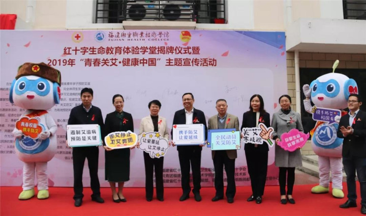 第32個(gè)世界艾滋病日即將來臨之際,11月28日,福建省紅十字會(huì)與福建衛(wèi)生職業(yè)技術(shù)學(xué)院共同舉辦紅十字生命教育體驗(yàn)學(xué)堂揭牌儀式暨2019年“青春關(guān)艾?健康中國”主題宣傳活動(dòng)。