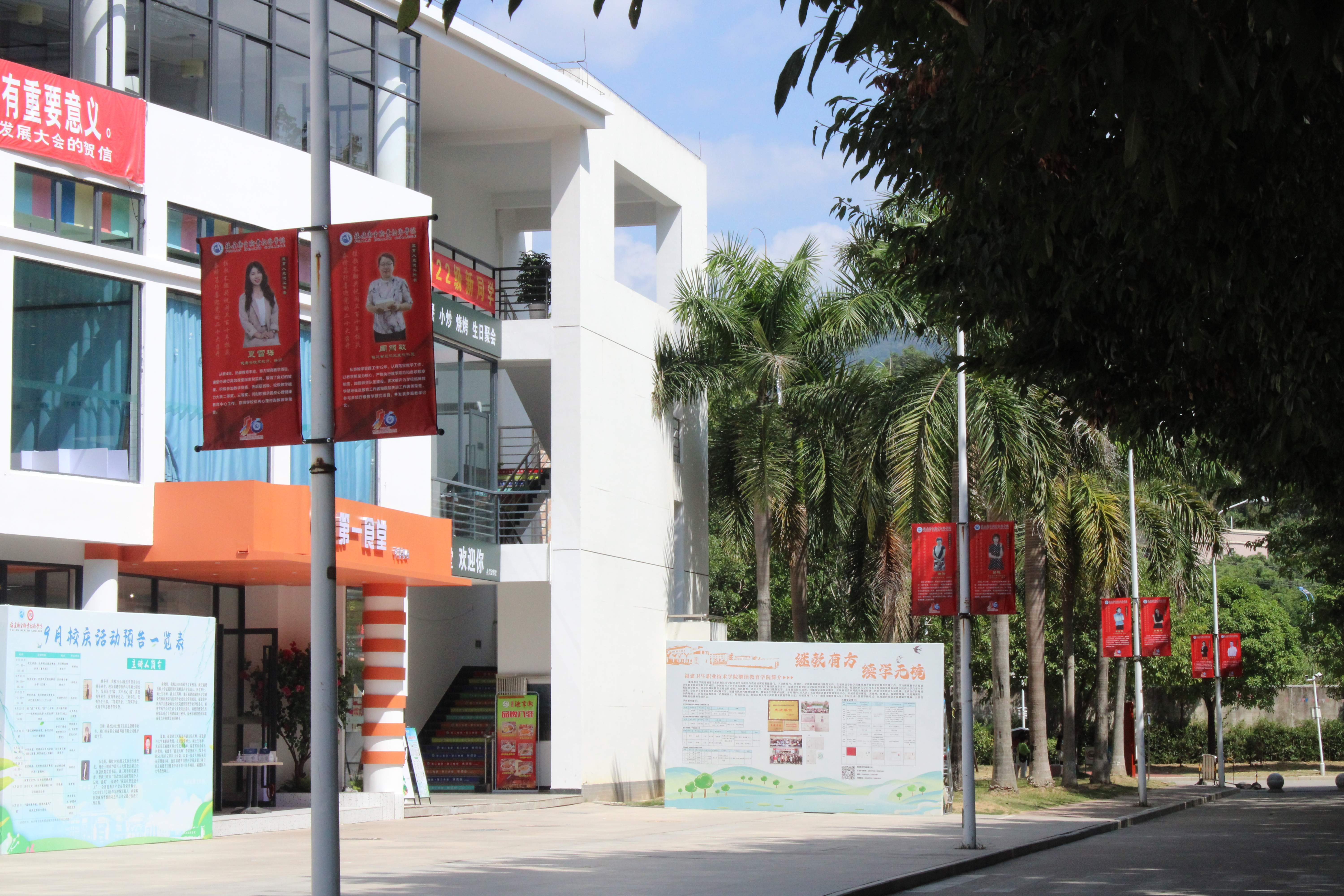 道路旁,紅色燈桿旗整齊劃一、格外鮮艷,印有先進(jìn)典型師生的事跡催人奮進(jìn),激勵(lì)全校師生砥礪前行。