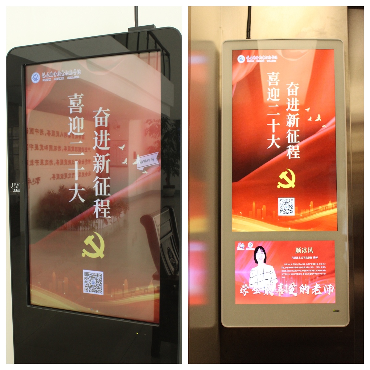 在黨的二十大即將召開(kāi)之際,校園內(nèi)的led屏滾動(dòng)播放喜迎二十大宣傳圖片,多處懸掛宣傳標(biāo)語(yǔ)、海報(bào),讓愛(ài)黨愛(ài)國(guó)的意識(shí)深入每一位師生心田。