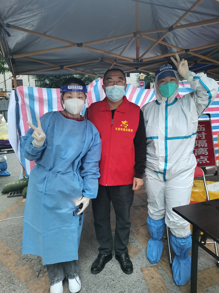 每天早晨不到6時(shí),林軍就下樓開(kāi)始工作,在核酸采樣開(kāi)始前,布置點(diǎn)位、搭帳篷、擺椅子,協(xié)助社區(qū)工作人員做好現(xiàn)場(chǎng)布置。采樣中,他幫忙維持秩序,提醒群眾戴好口罩,保持“一米線(xiàn)”距離,積極消除群眾偶爾出現(xiàn)的焦躁情緒,一直忙到下午兩三點(diǎn)。