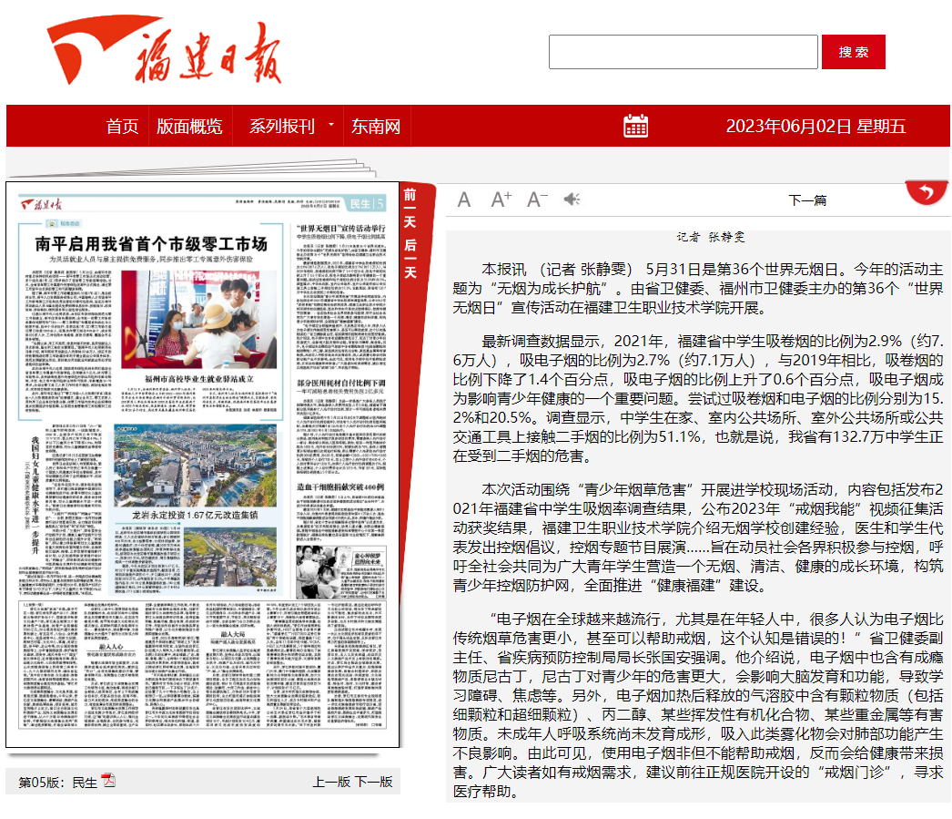 福建日?qǐng)?bào) 2023年6月2日 鏈接:https://fjrb.fjdaily.com/pc/con/202306/02/content_279006.html