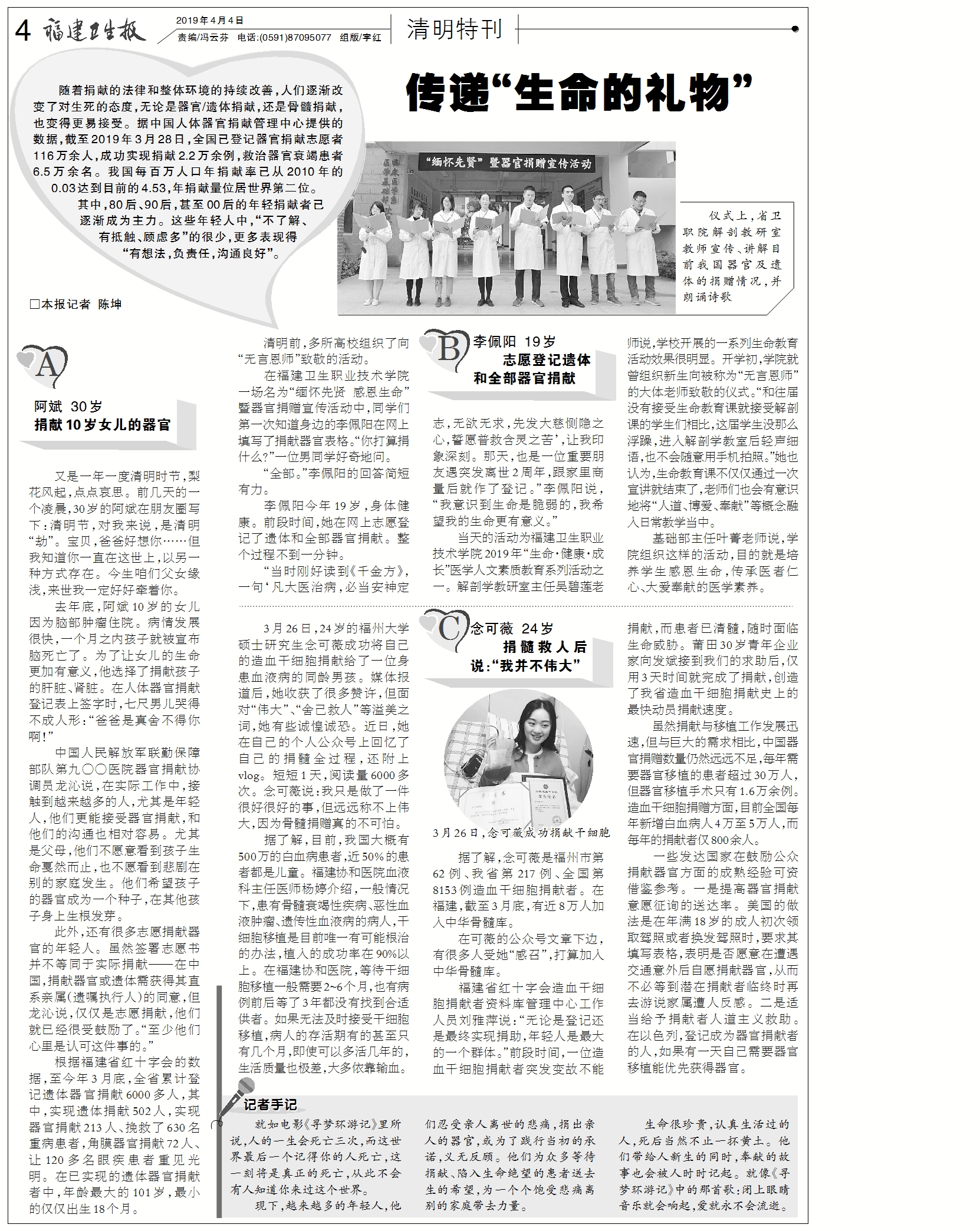 【福建衛(wèi)生報(bào)】傳遞“生命的禮物”