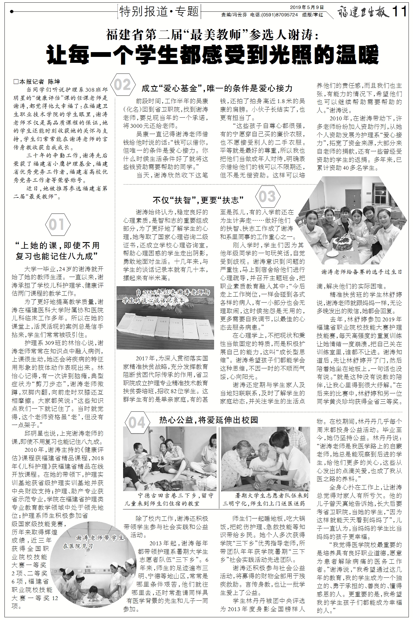 【福建衛(wèi)生報(bào)】福建省第二屆“最美教師”參選人謝濤:讓每一個(gè)學(xué)生都感受到光照的溫暖