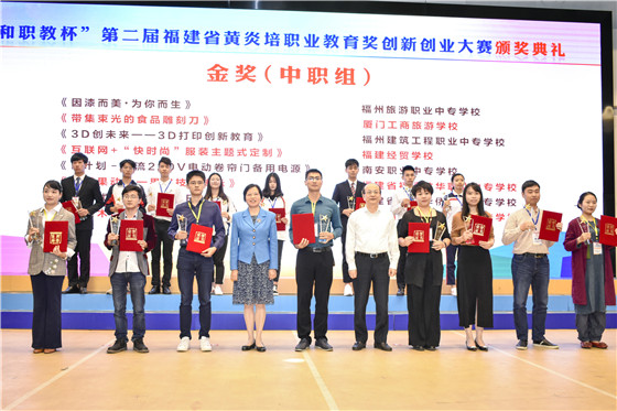 10月27—29日,由福建省中華職業(yè)教育社、省教育廳主辦,福建省匯眾創(chuàng)新創(chuàng)業(yè)研究院、黎明職業(yè)大學(xué)承辦,中國移動通信集團(tuán)福建有限公司協(xié)辦的“和職教杯”第二屆福建省黃炎培職業(yè)教育獎創(chuàng)新創(chuàng)業(yè)大賽決賽在泉州舉行。29日,中華職教社總社黨組成員、副巡視員李英愛,十一屆省政協(xié)副主席、省中華職教社主任郭振家,省教育廳副廳長陳國龍,泉州市人民政府副市長洪自強(qiáng)等領(lǐng)導(dǎo)參加頒獎典禮。