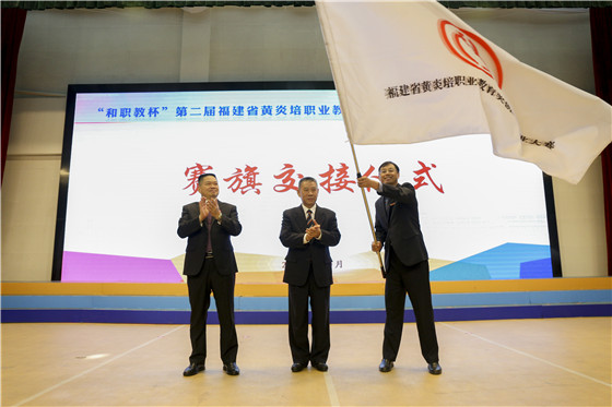 現(xiàn)場還舉行了賽旗交接儀式,黎明職業(yè)大學(xué)黨委書記王松柏將賽旗移交給下一屆大賽的主辦方——福建信息職業(yè)技術(shù)學(xué)院,校長江吉彬代表學(xué)院接過賽旗。
