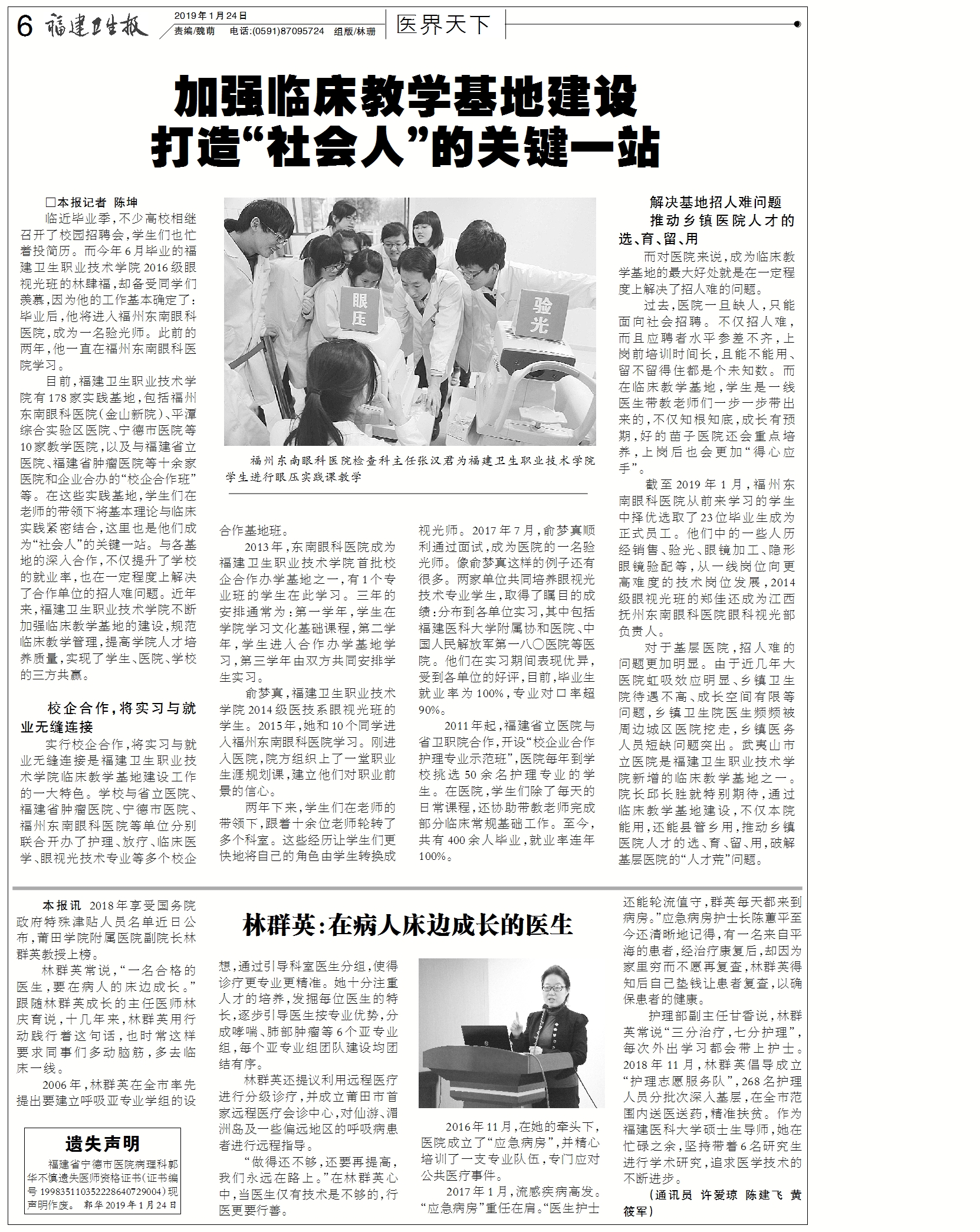 【福建衛(wèi)生報(bào)】加強(qiáng)臨床教學(xué)基地建設(shè)打造“社會(huì)人”的關(guān)鍵一站