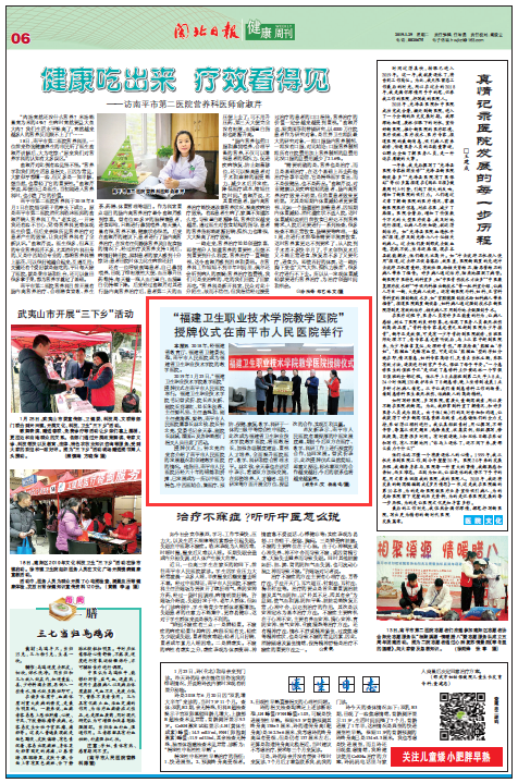 本報訊 2018年,經(jīng)福建省教育廳、福建省衛(wèi)健委批準,南平市人民醫(yī)院成為福建省衛(wèi)生職業(yè)技術(shù)學院的教學醫(yī)院。