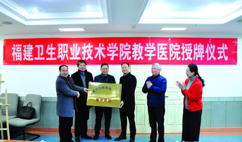 2019年1月25日,“福建衛(wèi)生職業(yè)技術(shù)學院教學醫(yī)院”授牌儀式在南平市人民醫(yī)院舉行。福建衛(wèi)生職業(yè)技術(shù)學院書記曾武祈、院長蘇友新、副院長鄭翠紅、處長朱扶蓉、主任郭禮堅、主任翁繩和、副主任龔海蓉、梁艷,南平市人民醫(yī)院董事長林文欽、院長鐘文亮、黨委書記余天泰、副院長林斌、潘國云及各職能部門相關(guān)人員出席了活動。