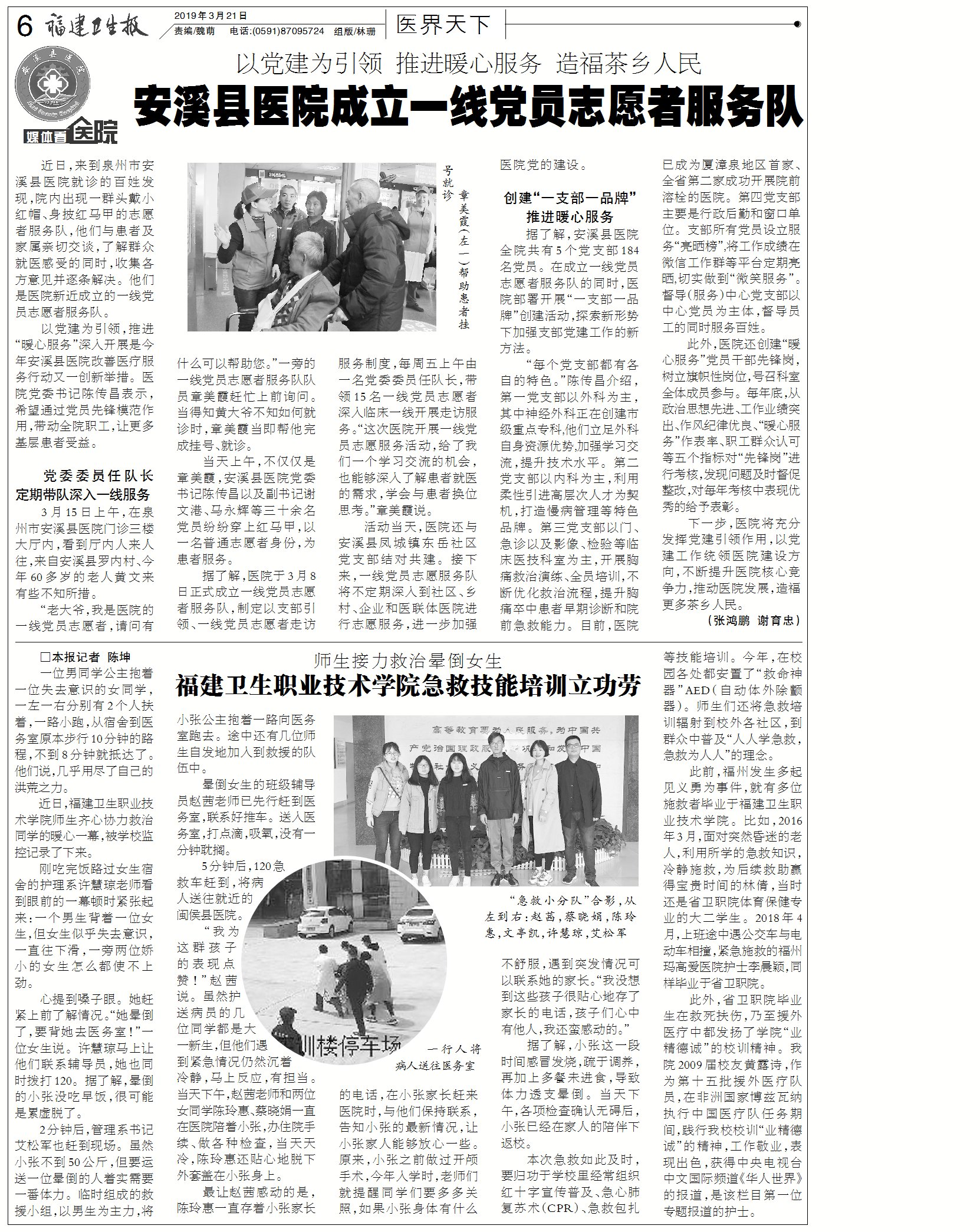 【福建衛(wèi)生報(bào)】福建衛(wèi)生職業(yè)技術(shù)學(xué)院急救技能培訓(xùn)立功勞