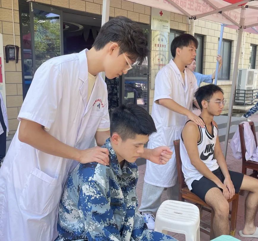 本次活動(dòng)的重頭戲以推拿為主。志愿者們用手指掌心等部位按摩同學(xué)們的穴位,通過(guò)推拿手法來(lái)調(diào)理身體的氣血流動(dòng)。剛下訓(xùn)的“萌新”在推拿的過(guò)程中表現(xiàn)出了明顯的放松和舒適感。