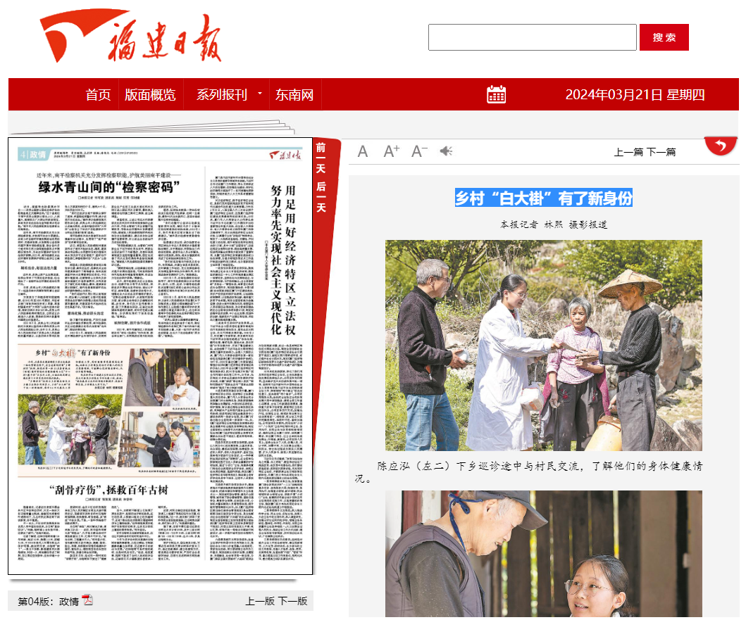 【福建日報(bào)】鄉(xiāng)村“白大褂”有了新身份