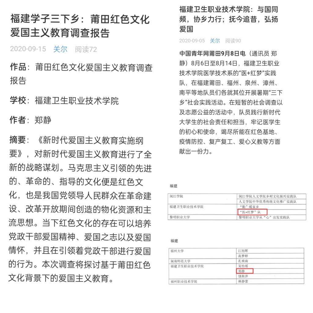 她和團隊先后獲得校級第四屆最熱公益校園益動活動“優(yōu)秀助力班級”、校級“五四紅旗團支部”、校級“暑期社會實踐優(yōu)秀團隊”、中國青年網(wǎng)“優(yōu)秀攝影團隊”、“趁年輕,去基層”2020全國大學(xué)生“千校千項”網(wǎng)絡(luò)展示活動“最美團隊”等榮譽稱號。個人獲?!皟?yōu)秀青年志愿者”、“優(yōu)秀學(xué)生干部”、“優(yōu)秀共青團干部”、“暑期社會實踐先進個人”以及“趁年輕,去基層”2020全國大學(xué)生“千校千項”網(wǎng)絡(luò)展示活動“青年基層觀察員”榮譽稱號。