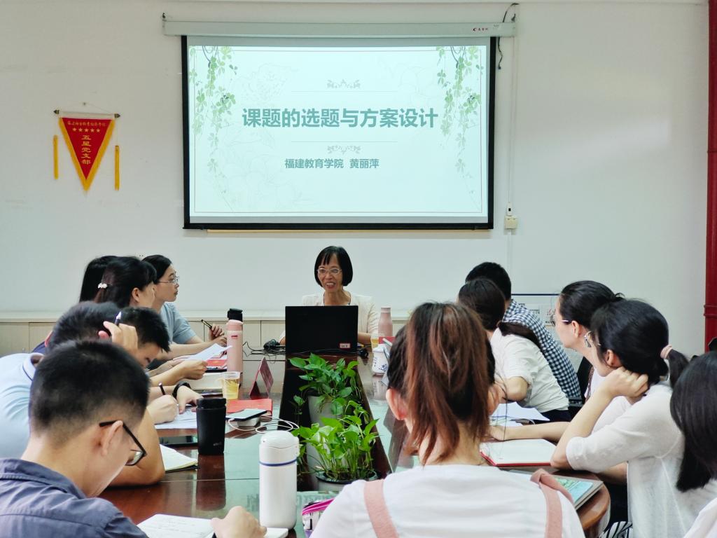 為全面提升我校思政課教師科研項(xiàng)目申報(bào)質(zhì)量,有效推進(jìn)課題研究工作,促進(jìn)教師專業(yè)化成長(zhǎng)。2022年6月2日,我校馬克思主義學(xué)院邀請(qǐng)福建省哲學(xué)社會(huì)科學(xué)領(lǐng)軍人才、福建教育學(xué)院黃麗萍教授為全體專兼職思政課教師作《課題的選題與方案設(shè)計(jì)》專題講座。講座由馬克思主義學(xué)院副院長(zhǎng)來朋珍主持。