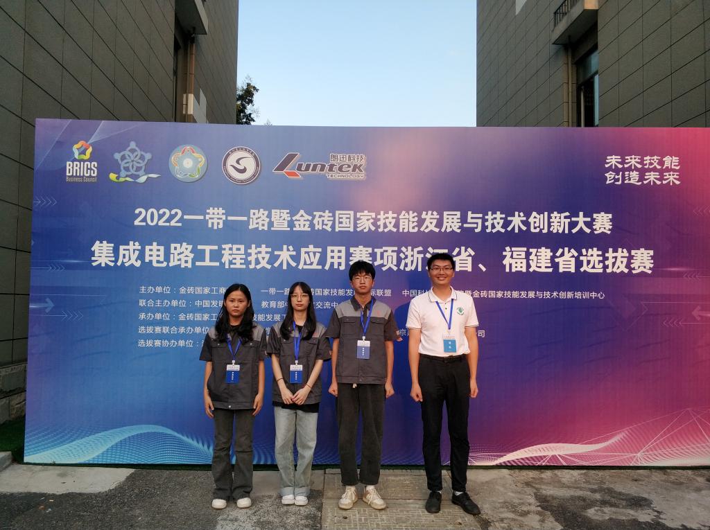 高手過招,杭城論劍。2022年9月17日至19日,2022“一帶一路”暨金磚國家技能發(fā)展與技術(shù)創(chuàng)新大賽浙江省、福建省選拔賽集成電路工程技術(shù)應(yīng)用賽項(xiàng)在杭州蕭山技師學(xué)院舉行。本次大賽由金磚國家工商理事會、一帶一路暨金磚國家技能發(fā)展國際聯(lián)盟、中國科協(xié)“一帶一路”暨金磚國家技能發(fā)展與技術(shù)創(chuàng)新培訓(xùn)中心主辦,來自福建、浙江兩省的17支代表隊(duì)共聚杭州,展開激烈的角逐。我校醫(yī)學(xué)技術(shù)系21級智能醫(yī)療裝備技術(shù)專業(yè)黃創(chuàng)偉、江馨怡、張敏晶三位同學(xué)組成的參賽隊(duì)斬獲二等獎。這是我校首次在該賽項(xiàng)獲獎,也是獲獎代表隊(duì)中唯一一所醫(yī)藥衛(wèi)生類院校。