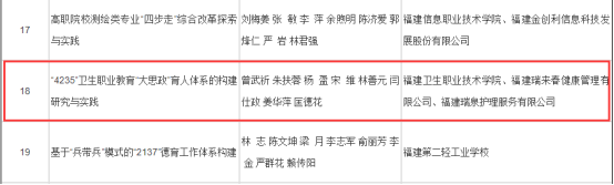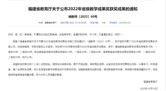近日,福建省教育廳公布了2022年省級(jí)教學(xué)成果獎(jiǎng)獲獎(jiǎng)名單,由我校黨委書(shū)記曾武祈等人完成的《“4235”衛(wèi)生職業(yè)教育“大思政”育人體系的構(gòu)建研究與實(shí)踐》榮獲省級(jí)職業(yè)教育教學(xué)成果獎(jiǎng)一等獎(jiǎng)。