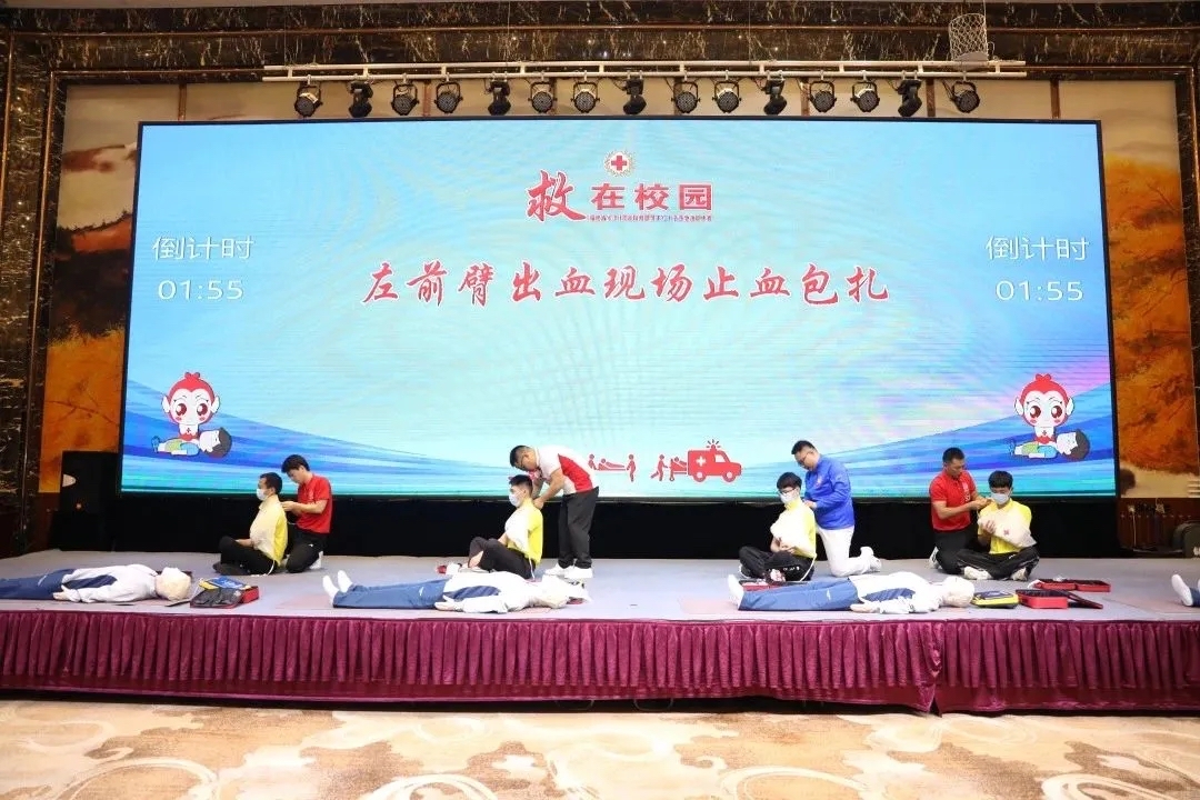 本次大賽以“救在校園”為主題,以教職員工紅十字救護(hù)員組隊(duì),通過(guò)嚴(yán)格選拔參加大賽。比賽參照第六屆全國(guó)紅十字應(yīng)急救護(hù)大賽實(shí)操考核范圍及技術(shù)標(biāo)準(zhǔn),包含成人心肺復(fù)蘇(含AED使用)操作、創(chuàng)傷救護(hù)(左前臂出血現(xiàn)場(chǎng)止血包扎)實(shí)操兩項(xiàng)內(nèi)容,展示紅十字應(yīng)急救護(hù)培訓(xùn)“進(jìn)校園”成效。
