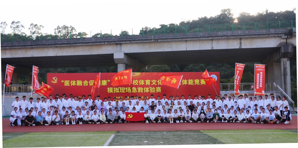 本次比賽是2023年職業(yè)教育活動(dòng)周專業(yè)技能競賽活動(dòng)中的一項(xiàng),通過擔(dān)架抬真人、夾花生、心肺復(fù)蘇等與職業(yè)實(shí)際場景相結(jié)合的形式,檢驗(yàn)同學(xué)們職業(yè)體能儲(chǔ)備、精細(xì)動(dòng)作控制、專業(yè)技能掌握、聯(lián)動(dòng)聯(lián)調(diào)配合等多個(gè)維度的能力,展現(xiàn)學(xué)?!搬t(yī)體融合”“體教融合”的發(fā)展理念和“崇健臻善”的校風(fēng)精神。