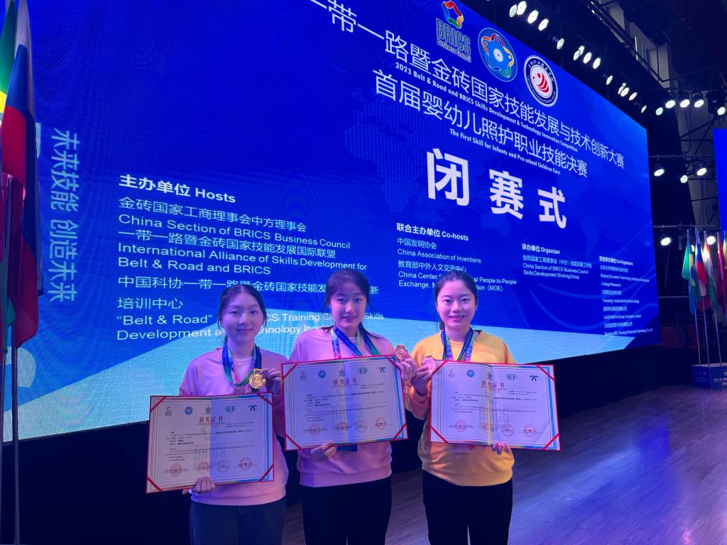 2023年12月14日至18日,2023一帶一路暨金磚國(guó)家技能發(fā)展與技術(shù)創(chuàng)新大賽——嬰幼兒照護(hù)職業(yè)技能賽項(xiàng)決賽在岳陽(yáng)職業(yè)技術(shù)學(xué)院開(kāi)賽。本次大賽由金磚國(guó)家工商理事會(huì)中方理事會(huì)、一帶一路暨金磚國(guó)家技能發(fā)展國(guó)際聯(lián)盟、中國(guó)科協(xié)一帶一路暨金磚國(guó)家技能發(fā)展與技術(shù)創(chuàng)新培訓(xùn)中心主辦,中國(guó)發(fā)明協(xié)會(huì)與教育部中外人文交流中心聯(lián)合主辦,金磚國(guó)家工商理事會(huì)(中方)技能發(fā)展工作組承辦,來(lái)自全國(guó)164所院校的三百余名選手共聚岳陽(yáng),展開(kāi)激烈的角逐。我校護(hù)理學(xué)院2021級(jí)嬰幼兒托育服務(wù)與管理專業(yè)林萱、李紫如喜獲高校組二等獎(jiǎng)、三等獎(jiǎng),蘇悅老師獲得教師組三等獎(jiǎng)。我校獲得優(yōu)秀組織獎(jiǎng),季婧敏老師獲得優(yōu)秀指導(dǎo)教師獎(jiǎng)。