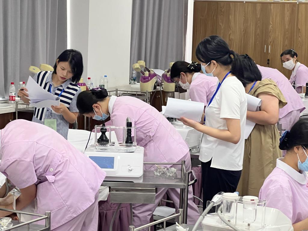 6月22日,我校順利完成2024年“1+X”美容光電儀器操作職業(yè)技能等級(jí)(中級(jí))考核工作,50名醫(yī)學(xué)美容技術(shù)專業(yè)學(xué)生參加考核。