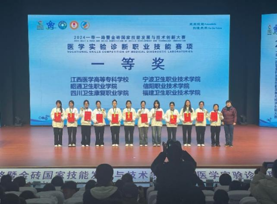 本次醫(yī)學實驗診斷職業(yè)技能大賽,是全國醫(yī)學檢驗教育教學專業(yè)的一次集中展示,也是行業(yè)集聚、專家學者匯聚的盛會。來自全國26個省市區(qū)的65支代表隊參賽。經(jīng)過兩天的激烈比拼,我校22檢驗301吳婧欣和22檢驗304沈靖嵐兩位同學憑借扎實的專業(yè)知識與精湛的實操技能在眾多選手中脫穎而出,榮獲“團體一等獎”,我校榮獲“最佳組織獎”。