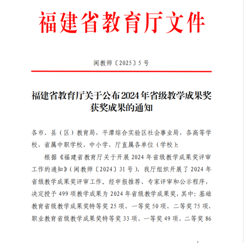 近日,在福建省教育廳公布的2024年福建省職業(yè)教育教學(xué)成果獎(jiǎng)獲獎(jiǎng)名單中,我校憑借卓越的教育教學(xué)質(zhì)量和持續(xù)的教育創(chuàng)新實(shí)踐,再度斬獲佳績(jī),榮獲多項(xiàng)獎(jiǎng)項(xiàng),為學(xué)校的教育發(fā)展史上增添了濃墨重彩的一筆。