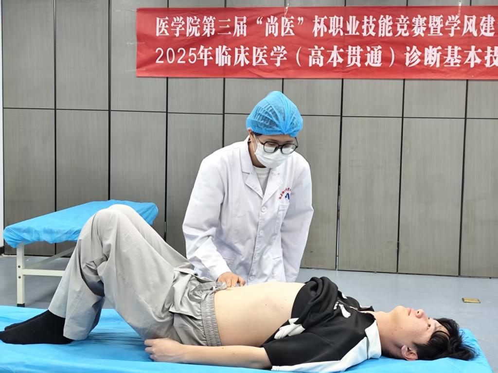 為全面考核學生的診斷基本操作技能,提高臨床思維分析能力,近日,由醫(yī)學院教師第一黨支部、醫(yī)學院團總支、臨床醫(yī)學專業(yè)聯(lián)合舉辦的2025年“尚醫(yī)”杯職業(yè)技能競賽暨學風建設月系列活動之一的臨床醫(yī)學(高本貫通)診斷基本技能競賽順利進行。