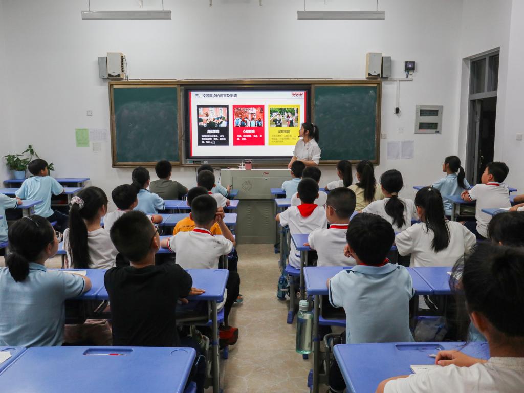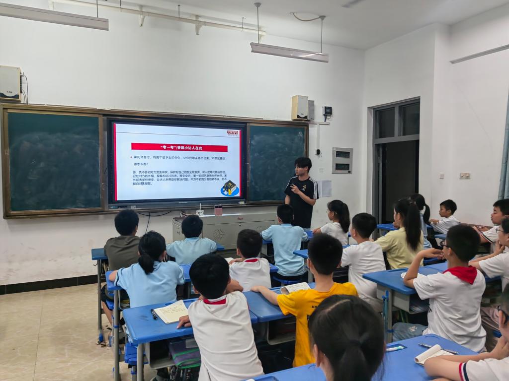 心理教研室夏雪梅老師帶隊為五年級學(xué)生開展拒絕校園霸凌心理健康知識講座,青少年正處于價值觀塑造和社交能力培養(yǎng)的關(guān)鍵期,通過講解“什么是校園霸凌”,讓學(xué)生懂得識別語言、肢體、網(wǎng)絡(luò)等多形態(tài)霸凌行為。夏雪梅系統(tǒng)闡述了校園霸凌的預(yù)防以及遭受霸凌時如何應(yīng)對,讓同學(xué)們對校園欺凌有了新的認識。23公衛(wèi)301吳燦銘作為志愿者,和學(xué)生共同參與防治校園霸凌情景模擬,幫助學(xué)生識別欺凌行為,增強了孩子們的法律意識和自我保護能力,促進身心健康和諧發(fā)展。