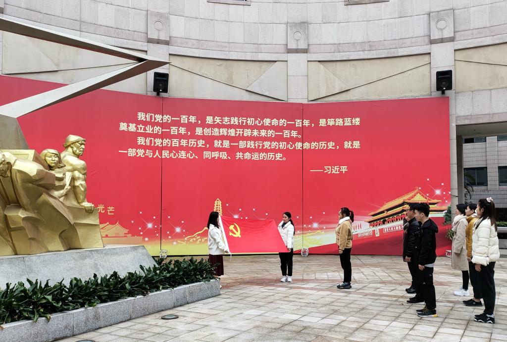 參觀結(jié)束后,在革命紀(jì)念館雕像《奮斗》旁,支部書記鄒艷輝帶領(lǐng)同志們面向著鮮艷的黨旗莊嚴(yán)宣誓,重溫入黨誓詞。入黨誓詞,是黨員對(duì)黨和人民作出的莊嚴(yán)承諾,也是黨員必須遵守的行為準(zhǔn)則。在革命歷史紀(jì)念館參觀學(xué)習(xí)后重溫入黨誓詞,更能促進(jìn)黨員同志們牢記入黨初心,堅(jiān)定理性信念,強(qiáng)化黨性修養(yǎng)。