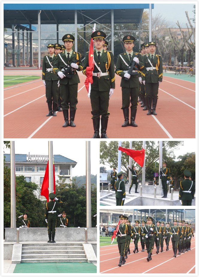 旭日初升,國(guó)旗護(hù)衛(wèi)隊(duì)隊(duì)員們邁著整齊有力的步伐護(hù)送鮮艷的五星紅旗入場(chǎng),全體師生心懷崇高的敬意向國(guó)旗行注目禮,伴著莊嚴(yán)嘹亮的國(guó)歌,五星紅旗冉冉升起,迎風(fēng)飄揚(yáng)。