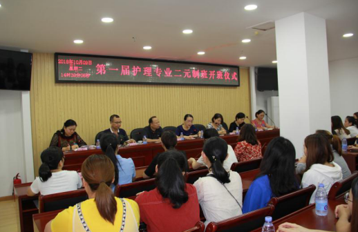 10月9日,我院鄭翠紅副院長率隊(duì)前往閩侯縣醫(yī)院舉行與醫(yī)院合作開辦的首屆護(hù)理二元制班開班儀式。閩侯縣衛(wèi)計(jì)局陳才鏗副局長、學(xué)院和醫(yī)院雙方有關(guān)領(lǐng)導(dǎo)、職能科室和系部負(fù)責(zé)人及全體35名學(xué)員參加了開班儀式。開班儀式由醫(yī)院王碧云書記主持。