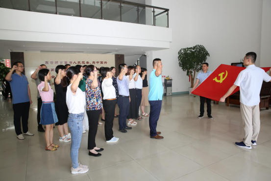 院直機關(guān)黨員干部們在黨總支書記艾松軍的帶領(lǐng)下,面向黨旗莊嚴宣誓:“我志愿加入中國共產(chǎn)黨,擁護黨的綱領(lǐng),遵守黨的章程……”擲地有聲的誓詞映照堅如磐石的初心,莊嚴而神圣。組織上入黨,一生一次;思想上入黨,一生一世。在黨的百年華誕來臨之際,重溫入黨誓詞不僅僅是回憶入黨時的激動和喜悅之情,更是為了讓黨員干部在誓詞中讀懂中國共產(chǎn)黨人矢志不渝、奮斗終身的初心,把紅色基因融入血脈化為行動,時刻以黨員最高標準來嚴格要求自己。