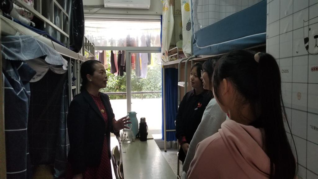 為進(jìn)一步拉近與學(xué)生的距離,落實(shí)“五聯(lián)七進(jìn)”,確?!拔覟槿罕娹k實(shí)事”活動(dòng)有實(shí)效,10月22日,副校長鄭翠紅深入聯(lián)系宿舍、社團(tuán)走訪調(diào)研。