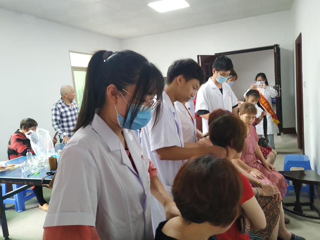 活動中,康健俱樂部社員為徐家村中老年村民送上了中西醫(yī)康復(fù)等一系列義診服務(wù),項目包含頸肩部保健按摩、拔罐療法、刮痧療法、肩周炎功能鍛煉指導(dǎo)及其他常見疾病康復(fù)宣教等。前來咨詢、接受診治的村民絡(luò)繹不絕,針對他們的健康問題,康健俱樂部師生細(xì)致詢問病情、耐心解釋病情及發(fā)展、提出正確合理的健康指導(dǎo)并做相應(yīng)的簡單治療,切實做到把健康送進社區(qū)、服務(wù)群眾。