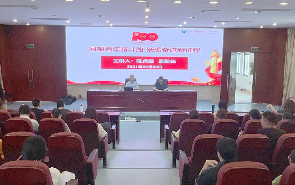 回望百年奮斗路,砥礪奮進新征程。為深入推進黨史學習教育,重溫黨的光輝歷程,傳承紅色基因,賡續(xù)紅色血脈,2021年9月8日,在實訓樓四樓報告廳,陳貞建副校長為健康管理系師生黨員上黨課,本次會議由健康管理系黨總支書記黃曦主持。