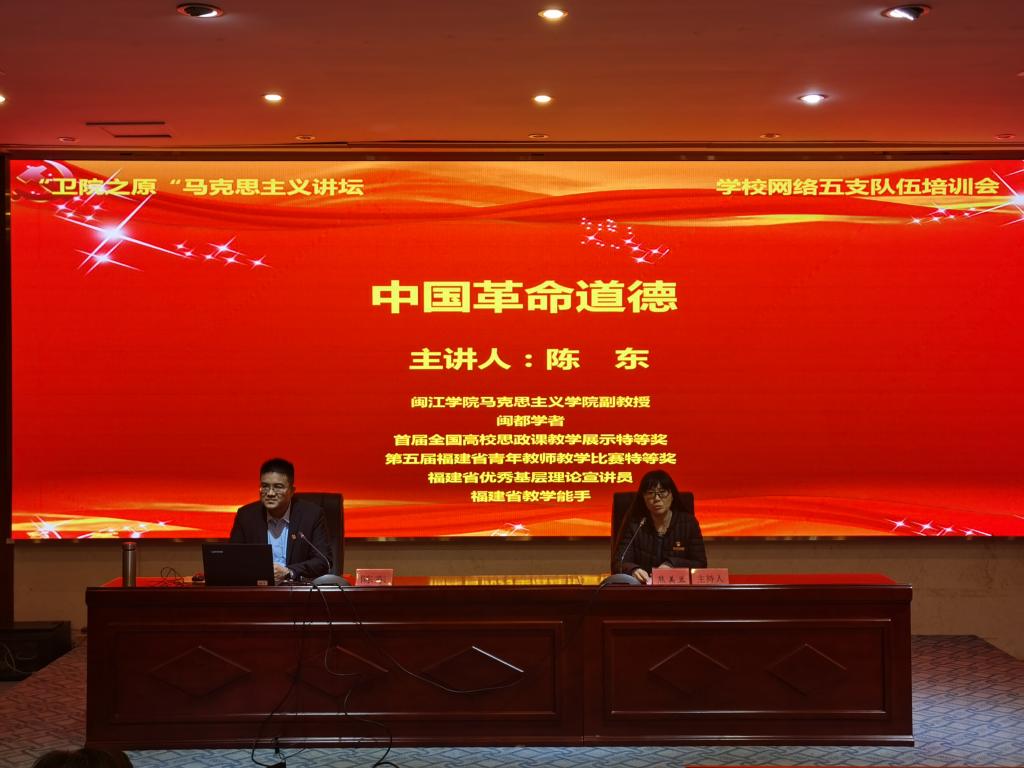 為深入學(xué)習(xí)習(xí)近平新時(shí)代中國(guó)特色社會(huì)主義思想,持續(xù)開展關(guān)于黨史、新中國(guó)史、改革開放史、社會(huì)主義發(fā)展史教育,深入學(xué)習(xí)中國(guó)革命精神,鞏固提升師生理想信念,2021年3月4日下午,閩江學(xué)院馬克思主義學(xué)院陳東副教授應(yīng)邀做題為“中國(guó)革命道德”專題講座。校黨委宣傳部、學(xué)生工作部、團(tuán)委等部門負(fù)責(zé)人、各二級(jí)院系黨總支書記及副書記、馬院全體專兼職教師和全體輔導(dǎo)員共同領(lǐng)會(huì)了中國(guó)革命道德的深刻內(nèi)涵。講座由馬克思主義學(xué)院院長(zhǎng)熊美蘭主持。