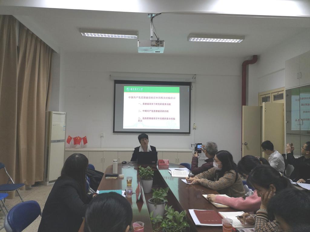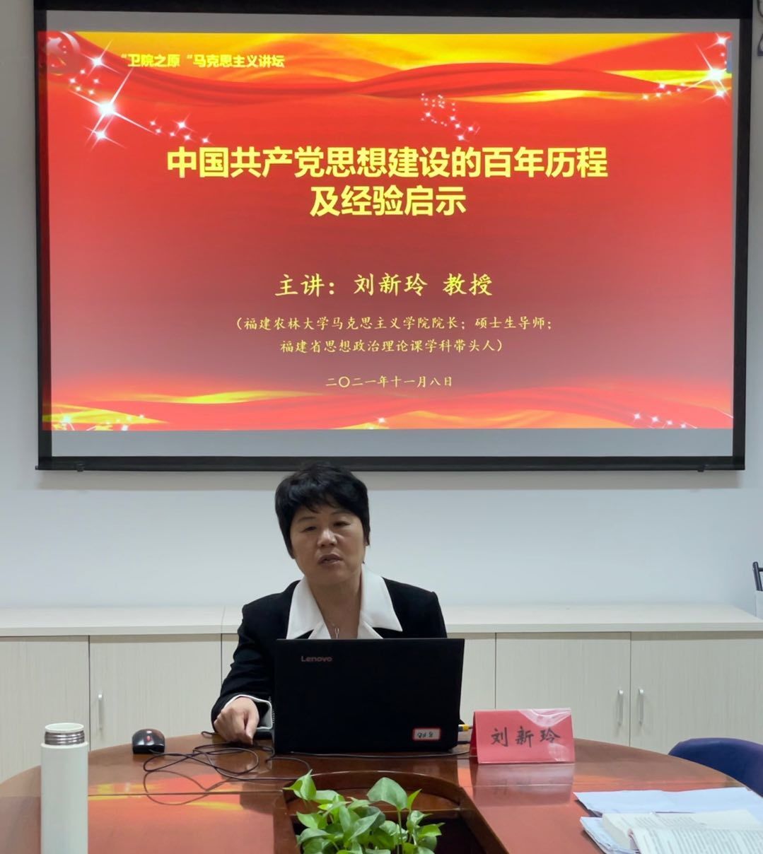為貫徹落實(shí)“七一”重要講話精神,深入學(xué)習(xí)百年黨史,從黨的百年奮斗歷程中感悟思想偉力,2021年11月8日,我校馬克思主義學(xué)院特邀福建農(nóng)林大學(xué)馬克思主義學(xué)院院長(zhǎng)、福建省思想政治理論課學(xué)科帶頭人劉新玲教授在行政樓107會(huì)議室作題為《中國(guó)共產(chǎn)黨思想建設(shè)的百年歷程及歷史經(jīng)驗(yàn)》的專題講座。講座由馬克思主義學(xué)院院長(zhǎng)熊美蘭主持,馬克思主義學(xué)院全體專兼職教師出席。