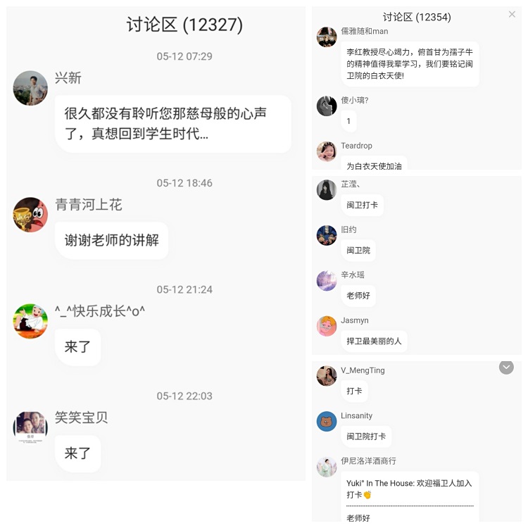 同學(xué)們紛紛來(lái)問(wèn)候老師、打卡交流
